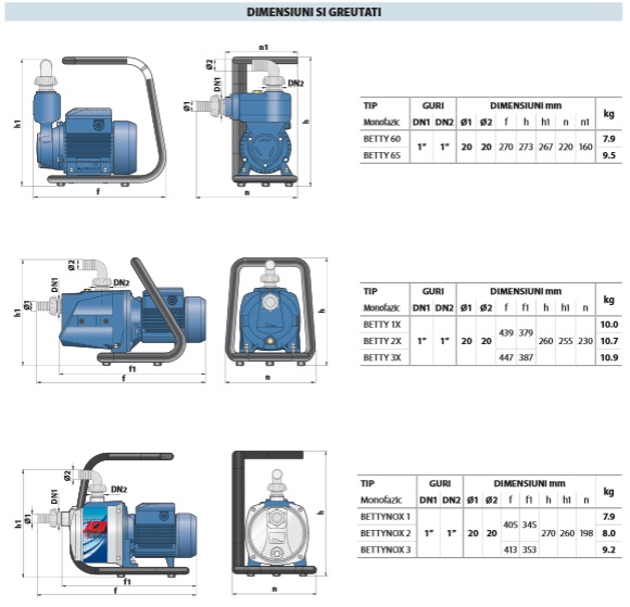 • Presiunea maxima în corpul pompei 6 bar