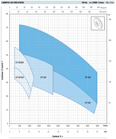 - pana la 900 l/min (54,0 m³/h)